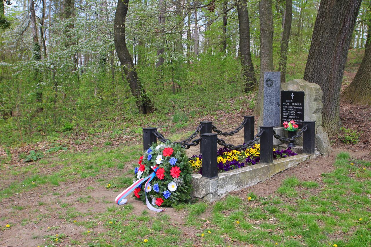 První část pietní vzpomínky se konala u památníku na Kalvárii, který připomíná tragickou smrt pětice osob: Anny Jelenkové, Tomáše Trubáka, Aloise Šestáka, Stanislava Babici a Antonína Lysoňka. Všichni byli vězněni, pro podezření z bojové činnosti, v Uherském Hradišti a poté převezeni do tehdejší okresní věznice v Napajedlích. S blížícími se osvobozeneckými armádami však narůstala nervozita členů Gestapa a ti se rozhodli všechny zajatce zlikvidovat. Oběti nechali následující den shodit do řeky Moravy poblíž Janišova mlýna, odkud byly vyzvednuty a identifikovány.