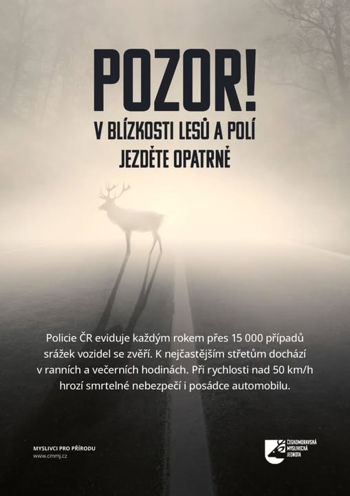 Žádáme proto všechny řidiče o zvýšenou opatrnost, snížení rychlosti a předvídání, zejména v ranních a večerních hodinách, kdy je pohyb zvěře nejčastější.