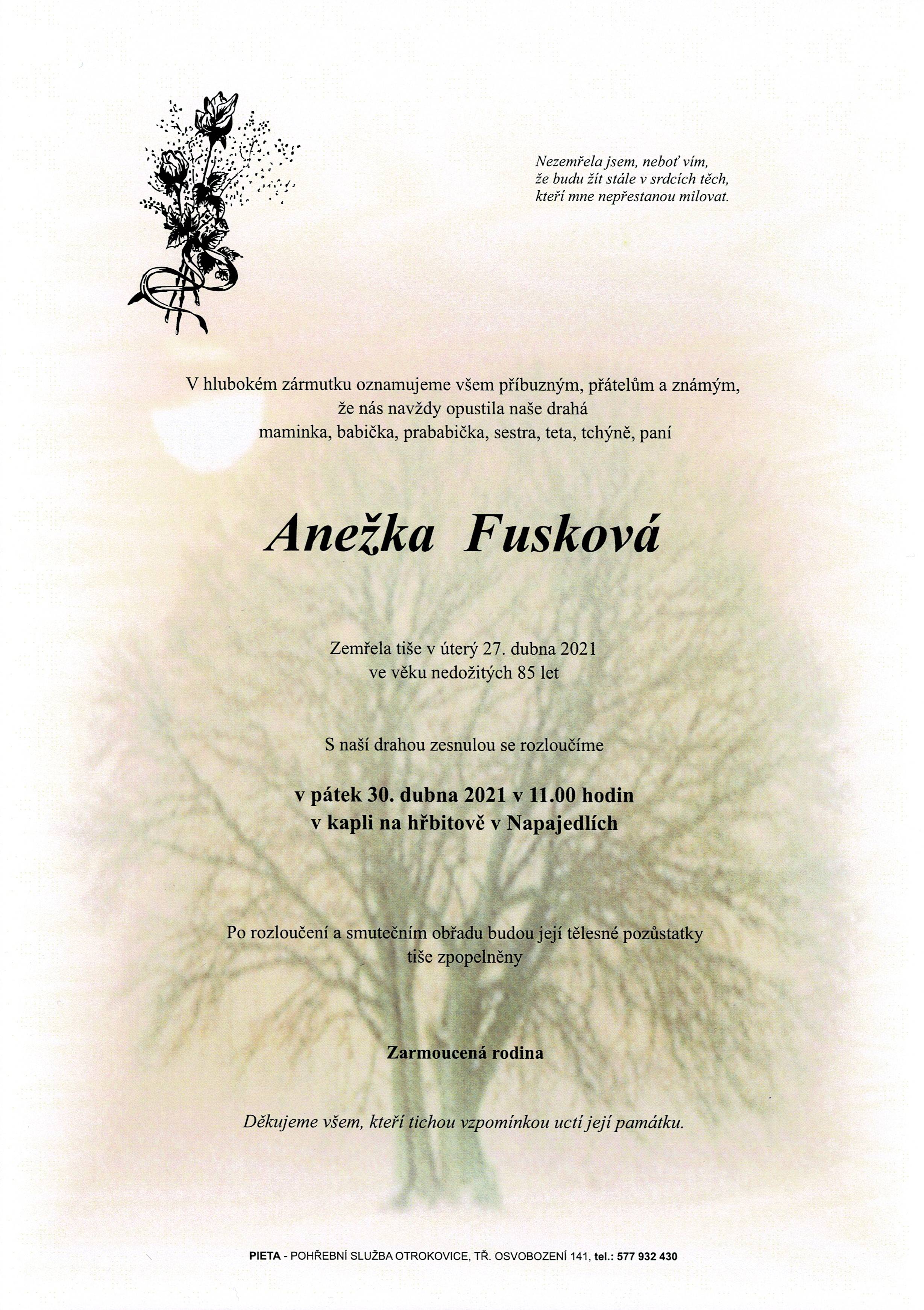 Smuteční oznámení - Anežka Fusková