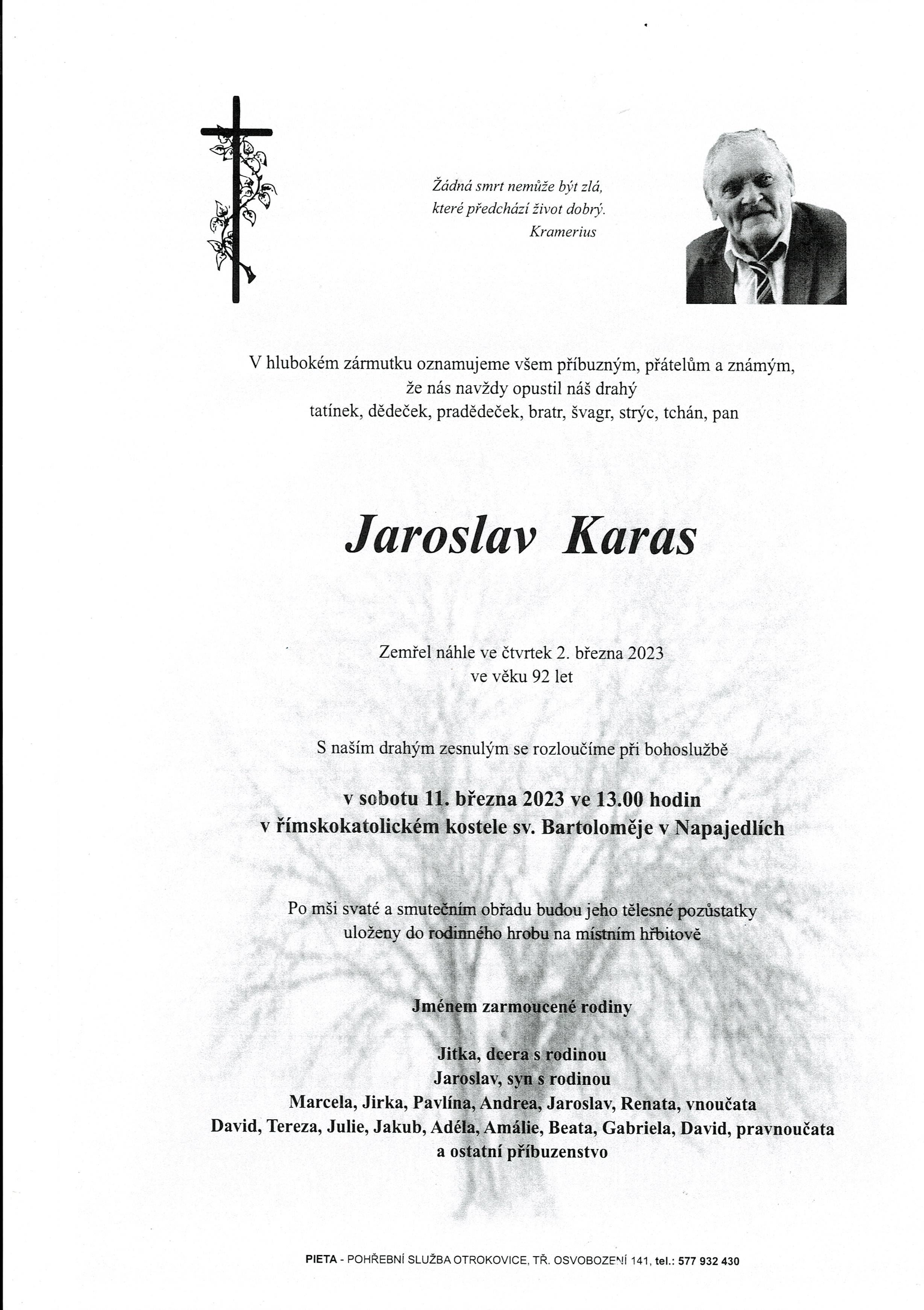 Smuteční oznámení - Jaroslav Karas
