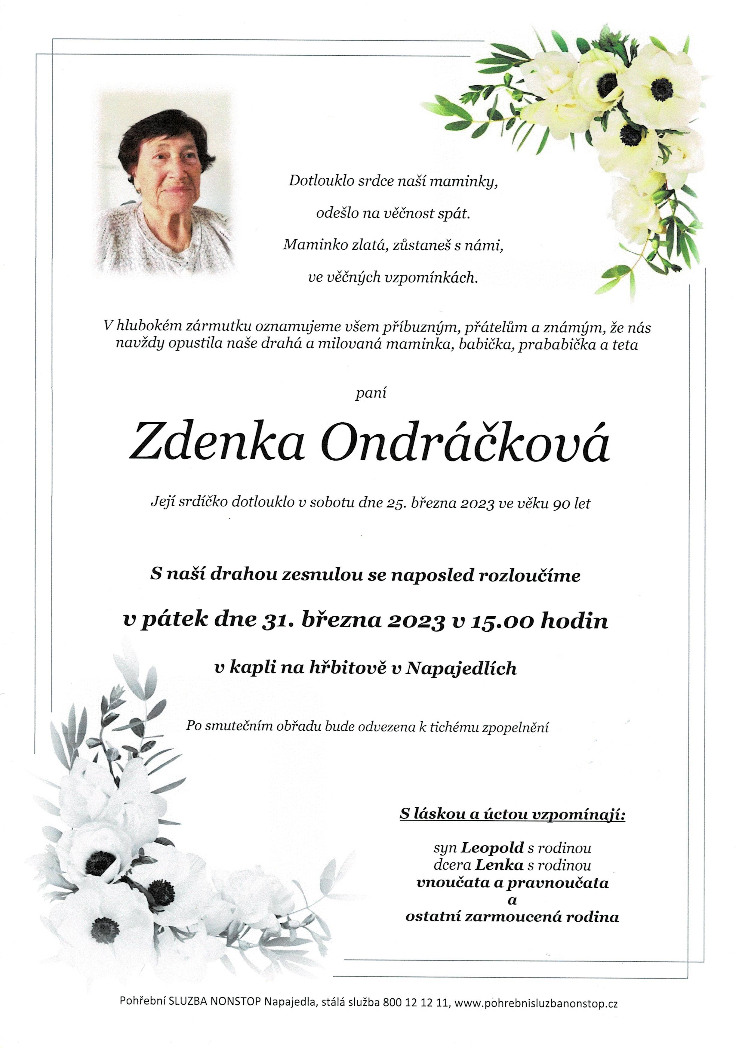 Smuteční oznámení - Zdenka Ondráčková
